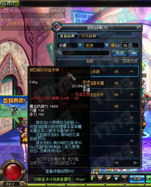 85SS手镯属性一览: