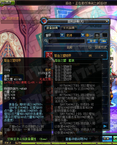 85SS重甲属性一览: