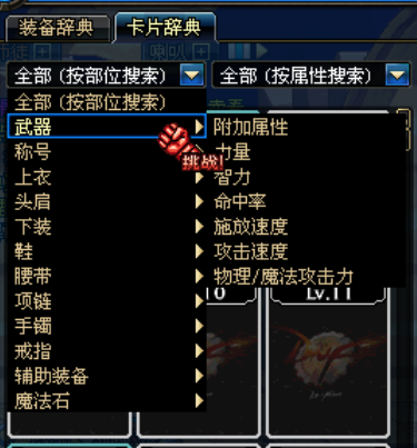 想要找卡片宝珠却记不到名字了?打开装备辞典旁边的卡片辞典,可以细节搜索