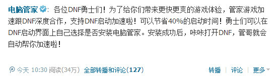 玩家dgwh2046吐槽:大公司又在自甘堕落搞流氓软件了。。。更新完后DNF游戏目录下夹带了一个奇怪的私货。。。。电脑管家。。。这尼玛就是所谓的“安全组件更新!?”