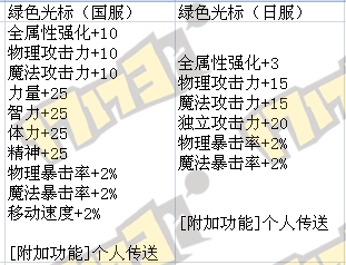 日服这个光环属性怎么说呢……要么属强和独立,要么三攻和暴击,不可兼得,国服削弱了三攻,但绿色光标属强比日服更多些。