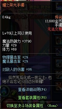 如上图,类似与遗迹手镯、悲鸣项链的这种,对敌人伤害加XX%的伤害,物理,魔法伤害加成XX%等,这种伤害属于在总伤害上所打出的额外伤害,也就是黄字伤害,包括无视属强等的伤害加成,这种伤害易和其他同类装备冲突,准确一点来说就是覆盖,顺序应该是武器→上衣→下装→头肩→鞋→腰部→称号→项链→手镯→戒指→左曹→右槽→宠物(后者覆盖前者)