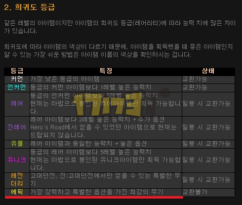 (图来自DNF韩服官网解释。红线翻译:具有最强力最特别的附带效果的最强装备;交换不可)