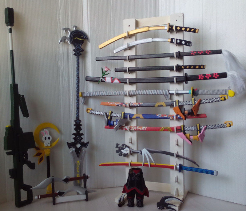 第1-2把亂做的刀,取名叫金角、銀角..........,3-4-5是兩把樓觀劍(其中一把未完成..花被姪女給要走了....),一把白樓劍,6-7-8-9是pso2的武器,武士刀-劍影、雙小刀....錦、朦、茜(刀子的等級擺錯了....),這幾把有空....會在到pso2版騙點gp