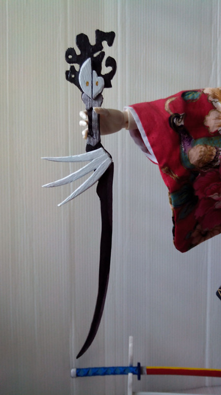 俺做的dnf第一把武器,外觀就只是一把普通的武士刀,滿好做的!!,麻煩在磨刀刃會吸到一堆木屑.(好像每一把都會..),握柄部分是用布纏的,找了好久才找到藍布帶,本來還有做了一個刀鞘,但...套上後怪怪的,沒拍到,改天有做新貨在一起編輯