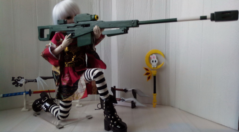 槍身比利不對,所以要射擊是像拿火箭筒那樣用扛的,手指也扣不到板機,槍身還有顏色也不好看,未來有空會來個愛槍大改造....