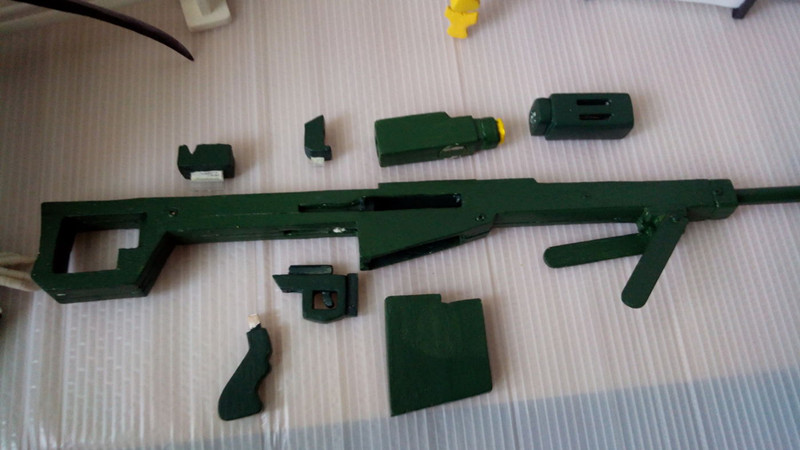 就是貝亞娜二覺使徒化所拿的那把槍,這...原本也不是是做這把的,原本是想做戰法二覺圖手上拿的那一把,但是.....那把太華麗了,武器又沒平面的圖,所以才剛把武器畫到飛機木就放棄了......轉而來做這把,不過...感覺做的太小了,長度才4x公分而已,槍身中間xxx那邊是做到有點那麼一點煩......所以就給他亂畫...亂上色..