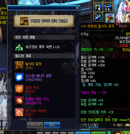 LV70-84的异界装备可以使用。使用后需要消耗一定的异次元碎片来升级异界装备。貌似有一定几率失败?(我升级了几十次没失败过。) 需要注意的是,。这个升级所需材料和装备等级/强化等级相关。强化越高所需要的材料越多。下面上图。