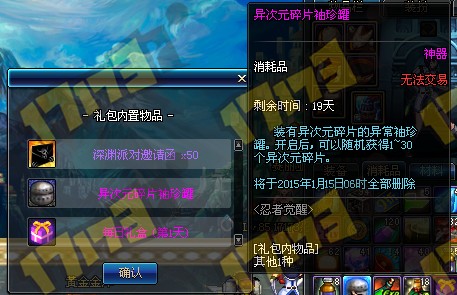 忍者觉醒礼盒第三日可获得50邀请函+碎片袖珍罐,第三日之后礼盒回归第一日,一直循环