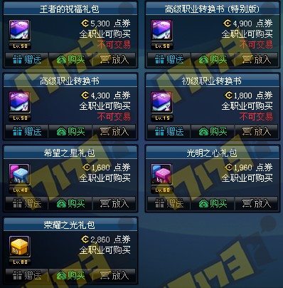 商城内下架Lv71级以上可使用转职书
