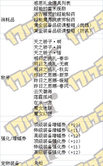 感恩礼盒道具列表(道具列表可能不全或错误,请以正式服更新为准)