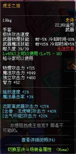 有效提升近距离武器攻击力,同时提升[念兽:龙虎啸]以及[念气环绕]的技能攻击力,对男气功师具有极大提升。