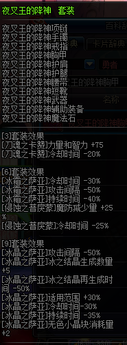 3件套提升[刀魂之卡赞]的属性加成效果并减少冷却时间,6件套大幅度加强[侵蚀之普戾蒙]的减防效果并减少冷却时间,优点是让技能冷却时间减少从而提升灵活性,缺点是不增加其范围