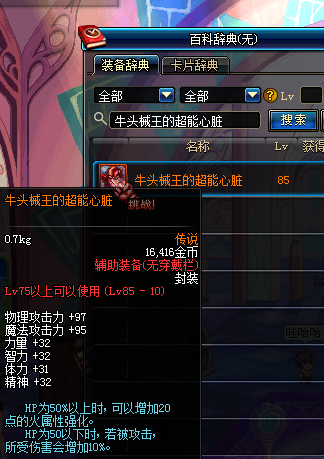 增加极高的物理/魔法攻击力和力量;物理/魔法攻击力对百分比技能提升较大,但对固伤技能无提升。