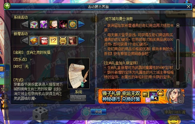 4、生肖之灵武器袖珍罐,88元必出史诗装备;【详细】