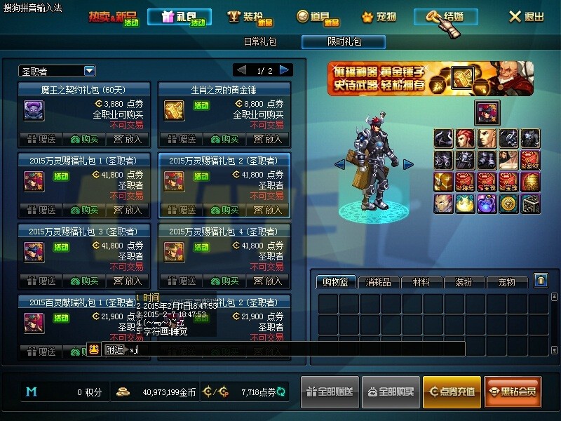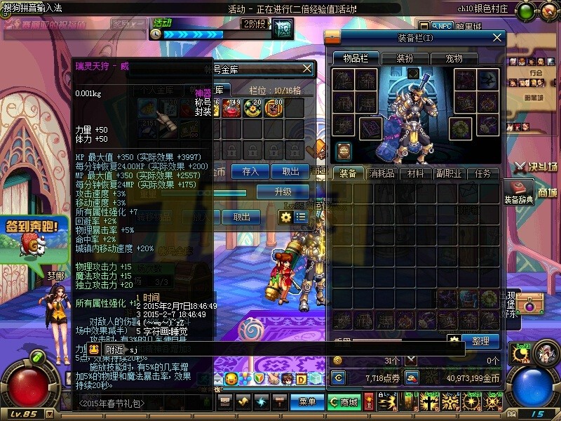 今天(2.7)晚上6点左右,体验服再次更新。本次更新后,更换了LOADING图并新增了新春版本双倍经验活动,关于2015春节礼包的称号、宠物属性不变,其他活动不变【点击查看体验服更新一览】。之前消失的“99块升70级”活动仍然没有回归。