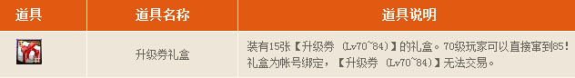 回归勇士首次登录的Lv70及以上的角色可以获得一个【升级券礼盒】。