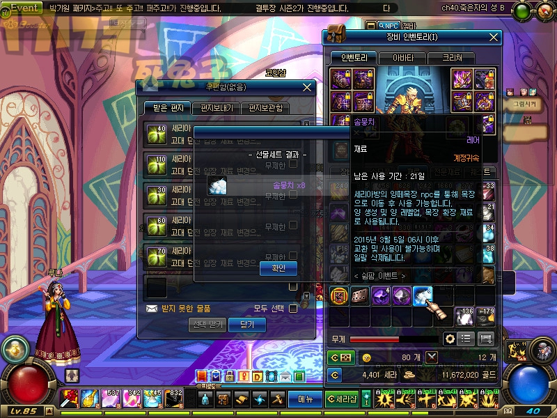 每天最初登陆的角色会得到1个棉花团箱子(账号归属)
