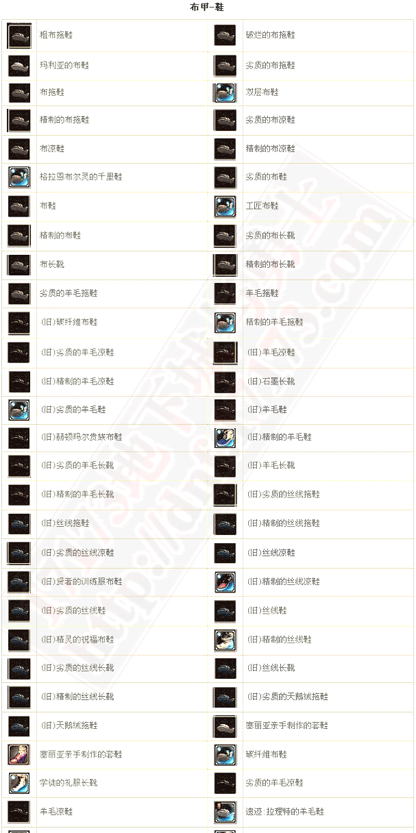 | 铂金星纹布鞋 | 40 | 所有属性抗性+3~5 移動速度+5% | |