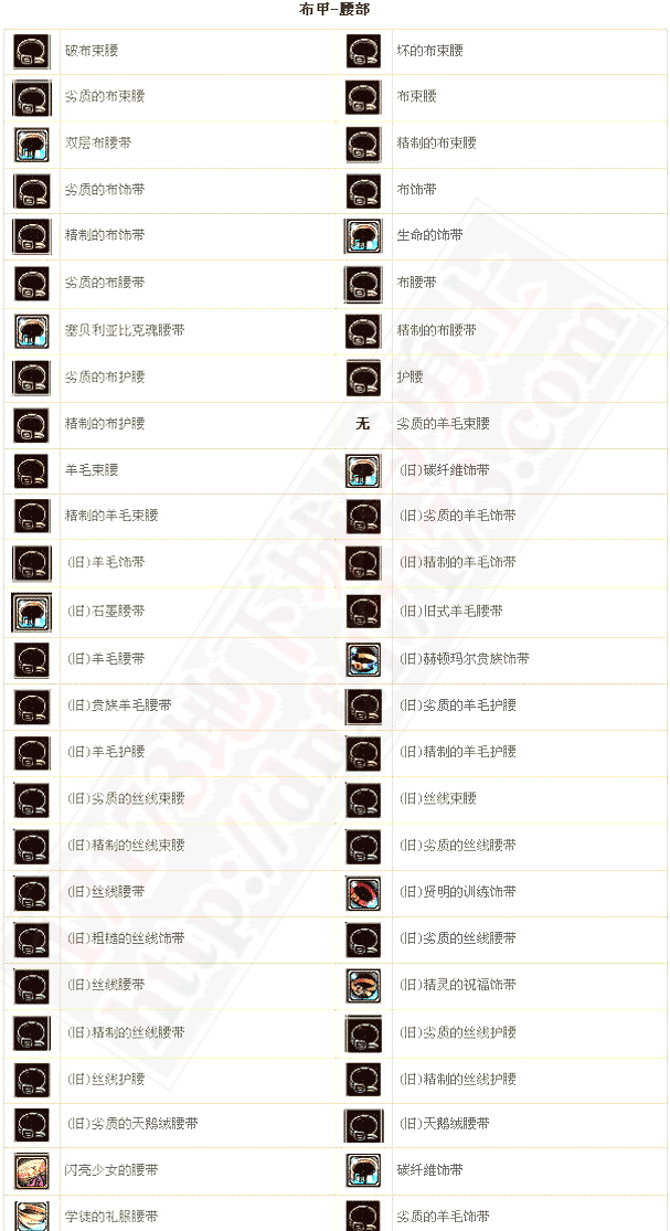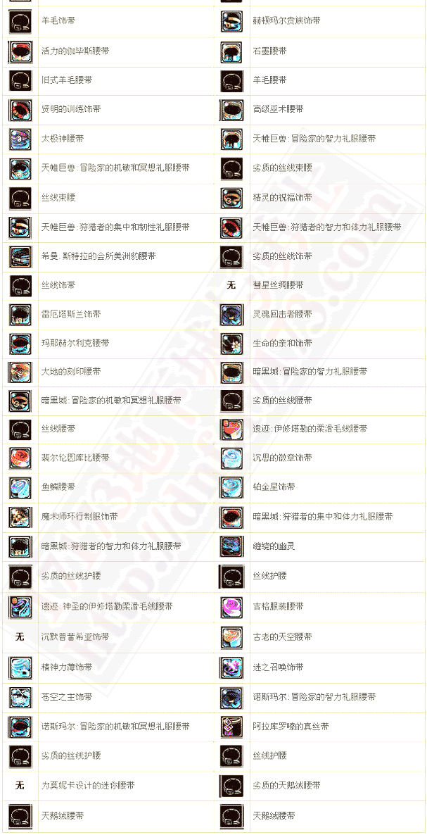 | 大地烙印腰带 | 35 | 水属性抗性+7 | |