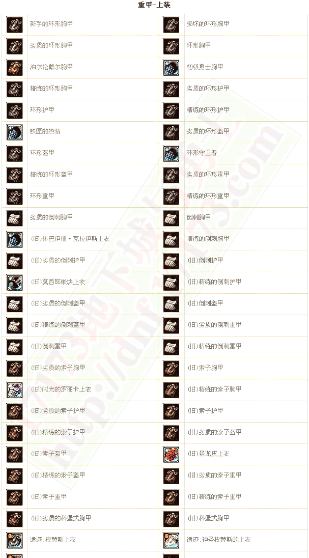 > 基本资料 > 防具重甲