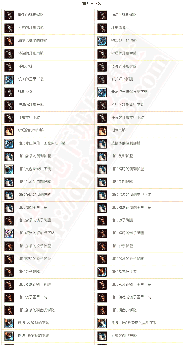 | 板甲套装 | 布甲套装 | 皮甲套装 | 轻甲套装 | 重甲套装 |