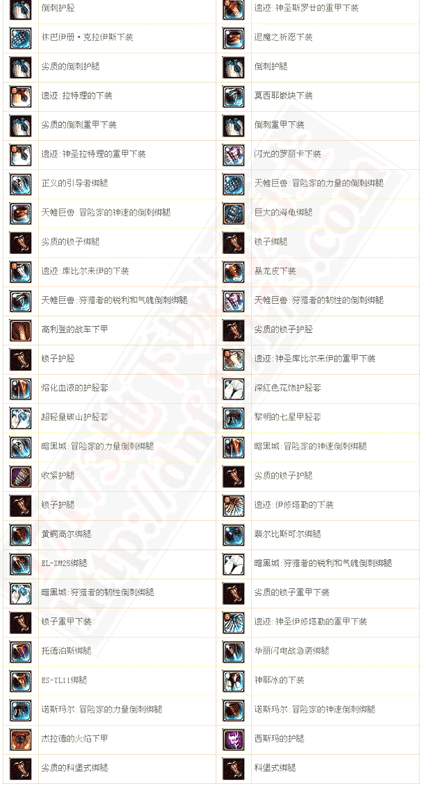 | 裴尔维斯绑腿 | 45 | 暗属性抗性+9 | |
