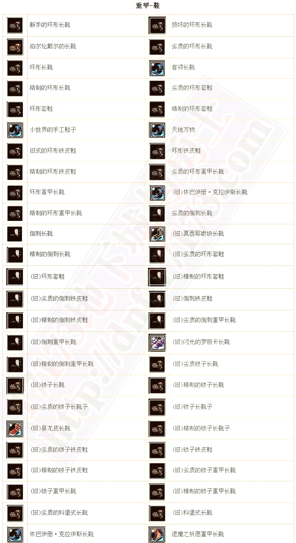 | 裴尔维斯皮靴 | 40 | 移动速度+5% 跳跃力+10 | |