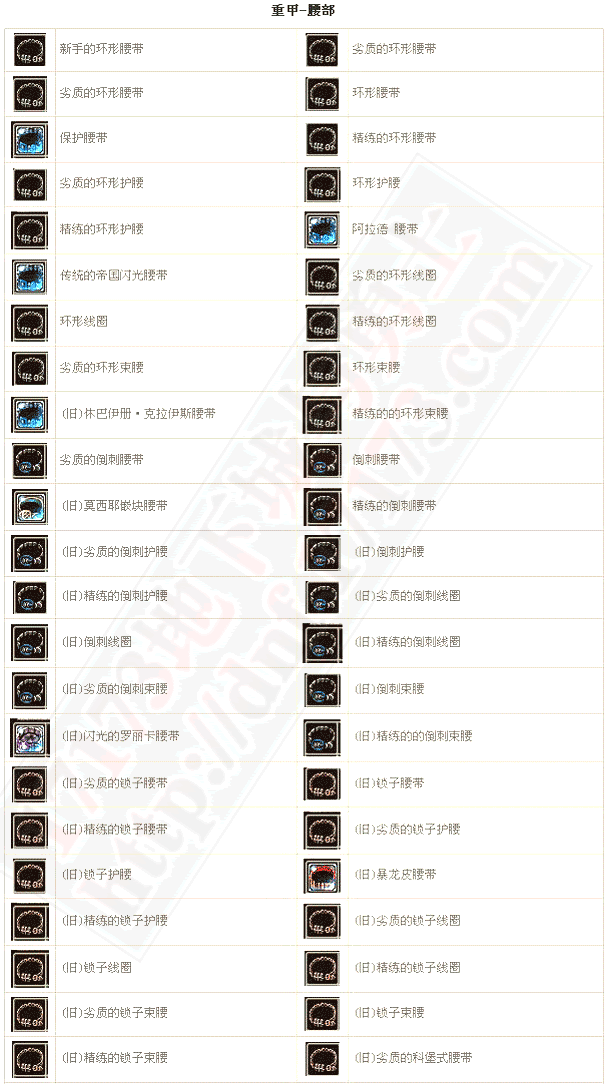 | 裴尔维斯腰圈 | 40 | 中毒抗性+13~14 | |