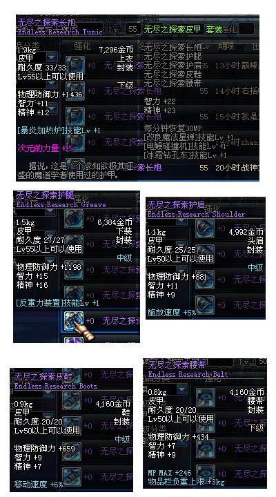 全职业55级套装属性