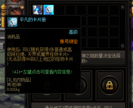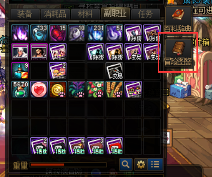 另外,通过物品栏的装备、消耗品、副职业三个栏目当中也可以快速进入到冒险图鉴当中,装备栏对应装备图鉴、消耗品对应怪物图鉴、副职业对应卡片图鉴。