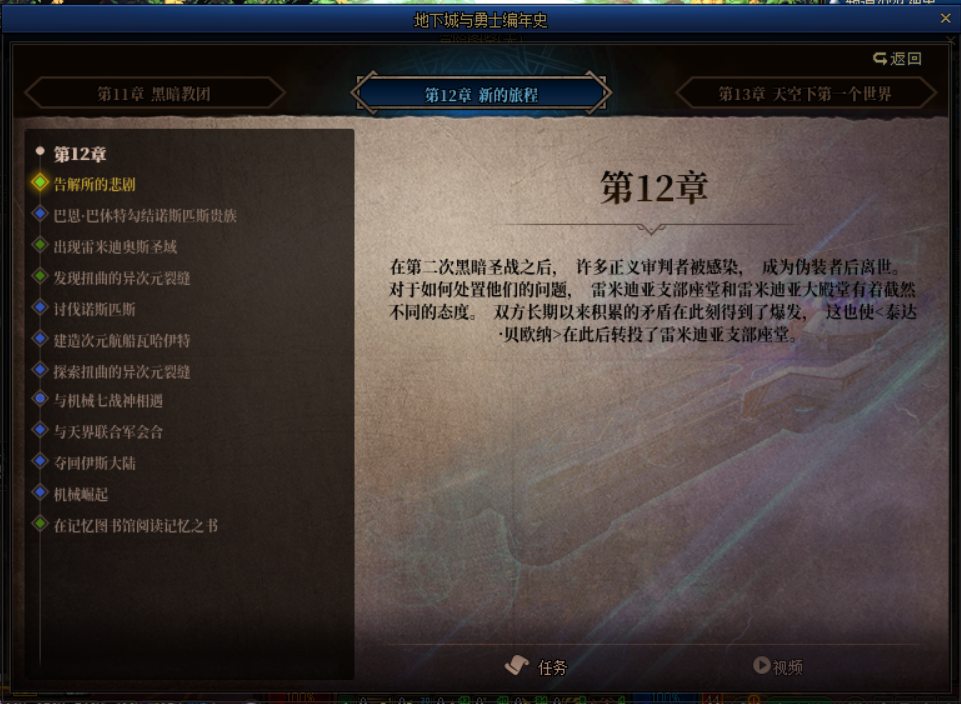 勇士们可以在编年史当中看到DNF的官方剧情,贯穿整个DNF的世界观,包括之前完成的主线任务都可以在此处完成地阅读到,有时间小伙伴们可以来了解一下。