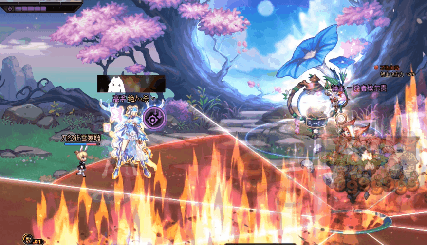 招式3:每个人都有影子,也是切换到死的世界,角色脚下会生成红圈,此时需要将红圈放到花路上,一共放两个,然后切换回生的世界,对领主进行输出即可。