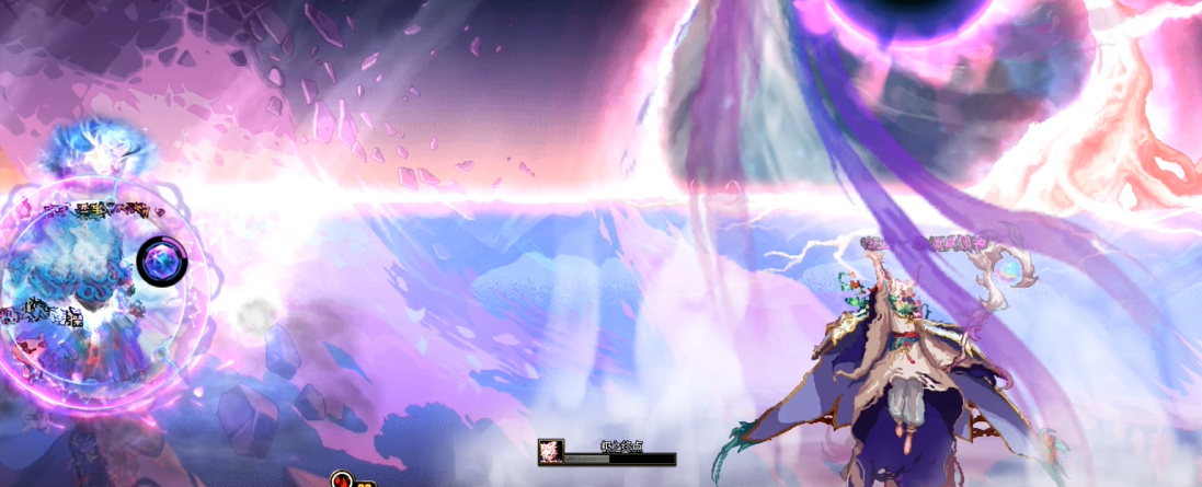 当领主血量降低到一定程度时,会巨大化,此时领主无敌,要攻击场景上的勾玉才能有效造成伤害。