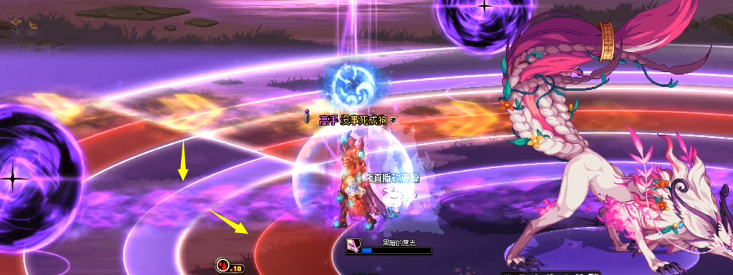 形态结束后,背景会从紫色切换到金色,此时要记得用紫色处理金色。当下方出现光明的意志读条时,场上会出现一个金色球体,以及金色龙卷风,我们要做的是躲避金色龙卷风和领主的攻击,吃场景中产生的紫色狐狸,去触碰金色能量球,当下方计数归零后,机制解除。