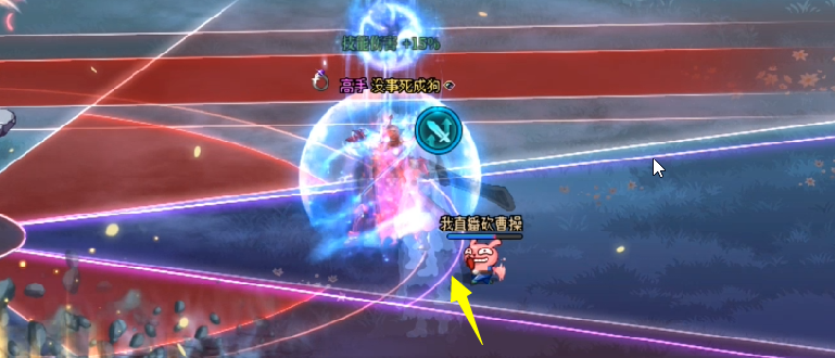 如果被打多了,头上的法阵条涨满了,法阵会变大追踪角色,角色被抓到会直接暴毙,建议贴着场景边缘跑,走大圈。