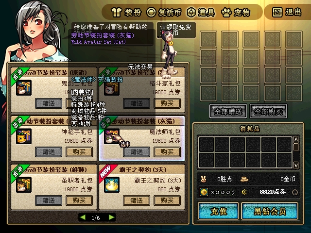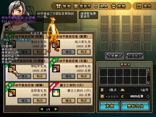 这次更新后推出了一个新的礼品包,价值19800点卷,也就是198Q币。里面的东西非常多,包括新更新的动物套装,新的称号勋章,服务器喇叭,魔锤,抗疲劳药水,7日的达人的契约和霸王的契约。
